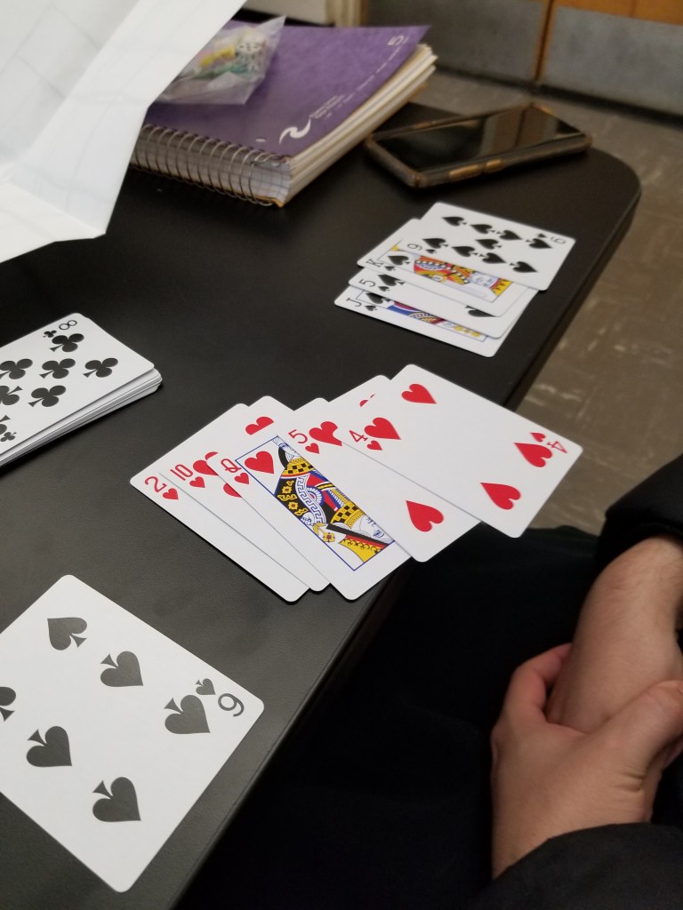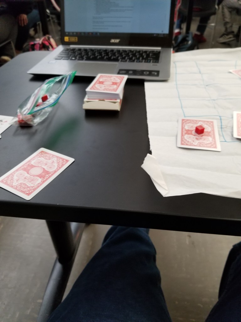 Different board and hand sizes were attempted, but anything less than 5 took too long to play and anything less than a 5 by 5 when the players were dropping 10 cards total every turn was too little (after some testing I was unable to justify grid shapes more complicated than a square and risk losing player comprehension and retention of the rules).